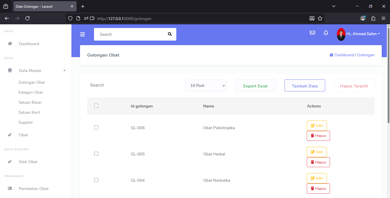 - Data Golongan Obat.