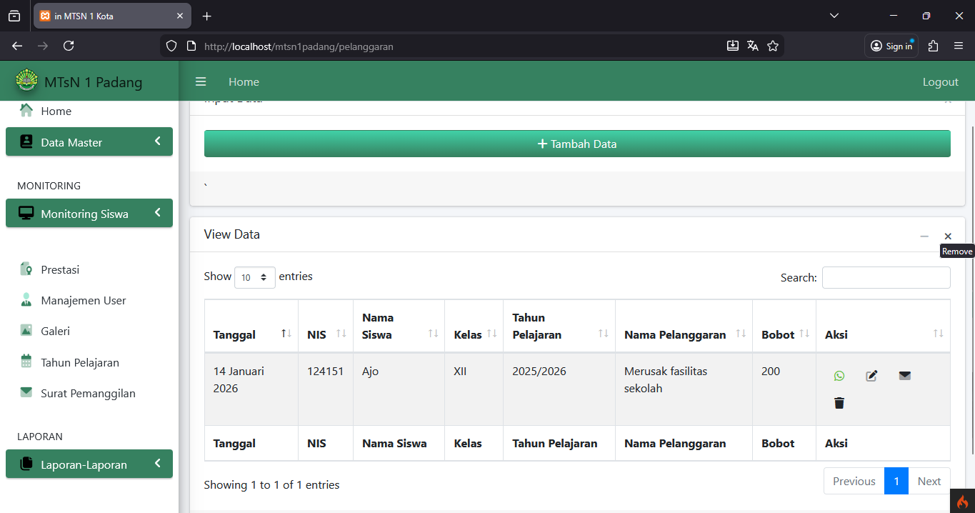 - Meminimalkan kesalahan pencatatan monitoring siswa.