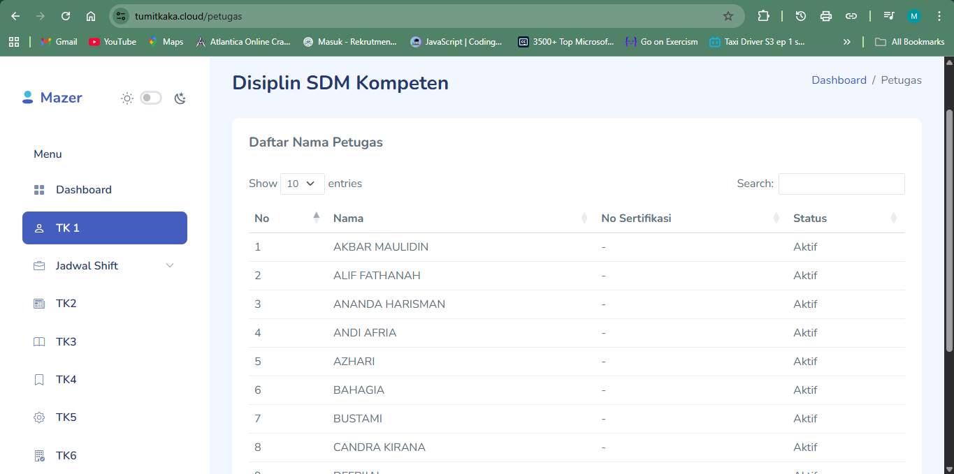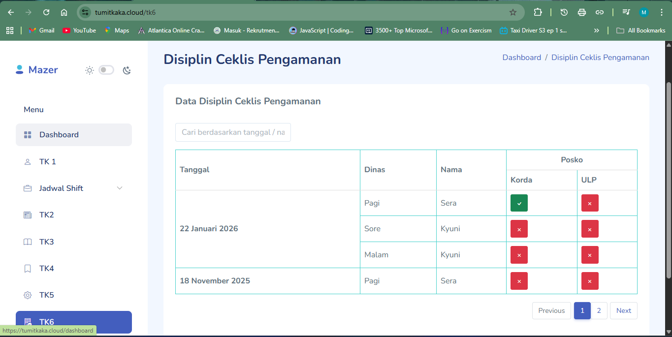 - Kepala posko input data petugas yang dinas.