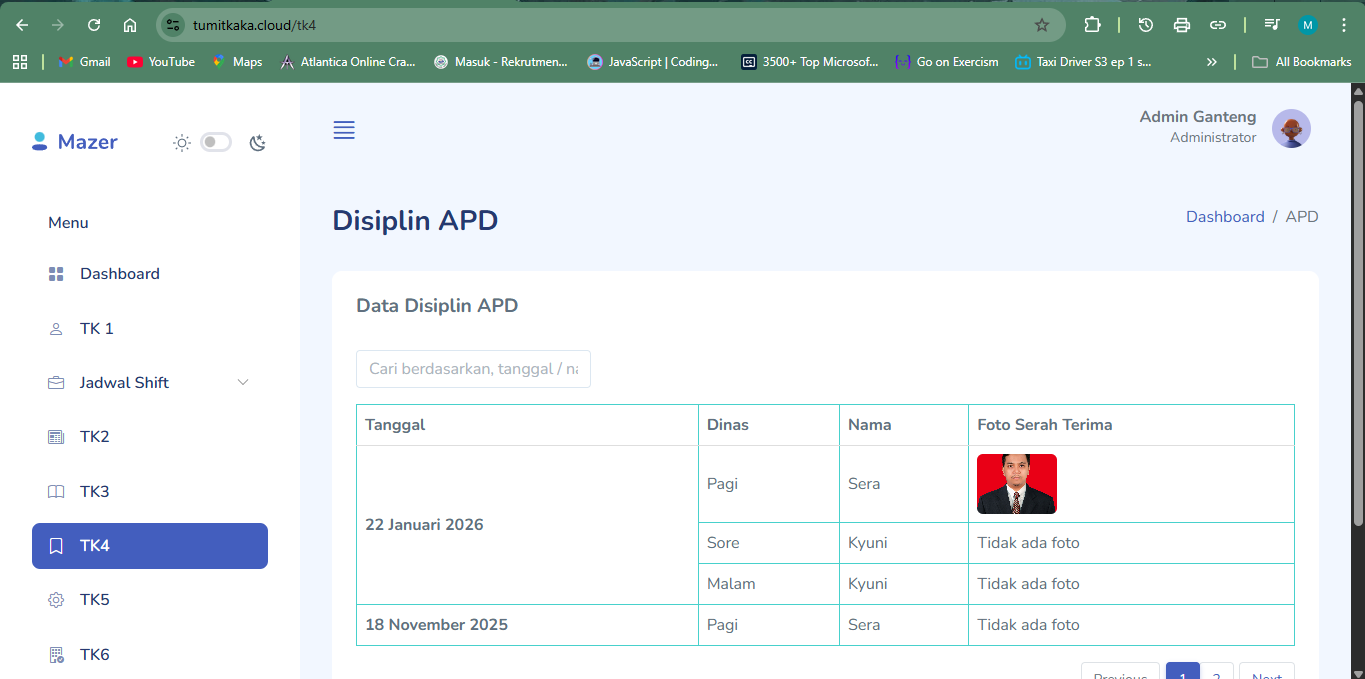 - Kepala posko input foto serah terima petugas.